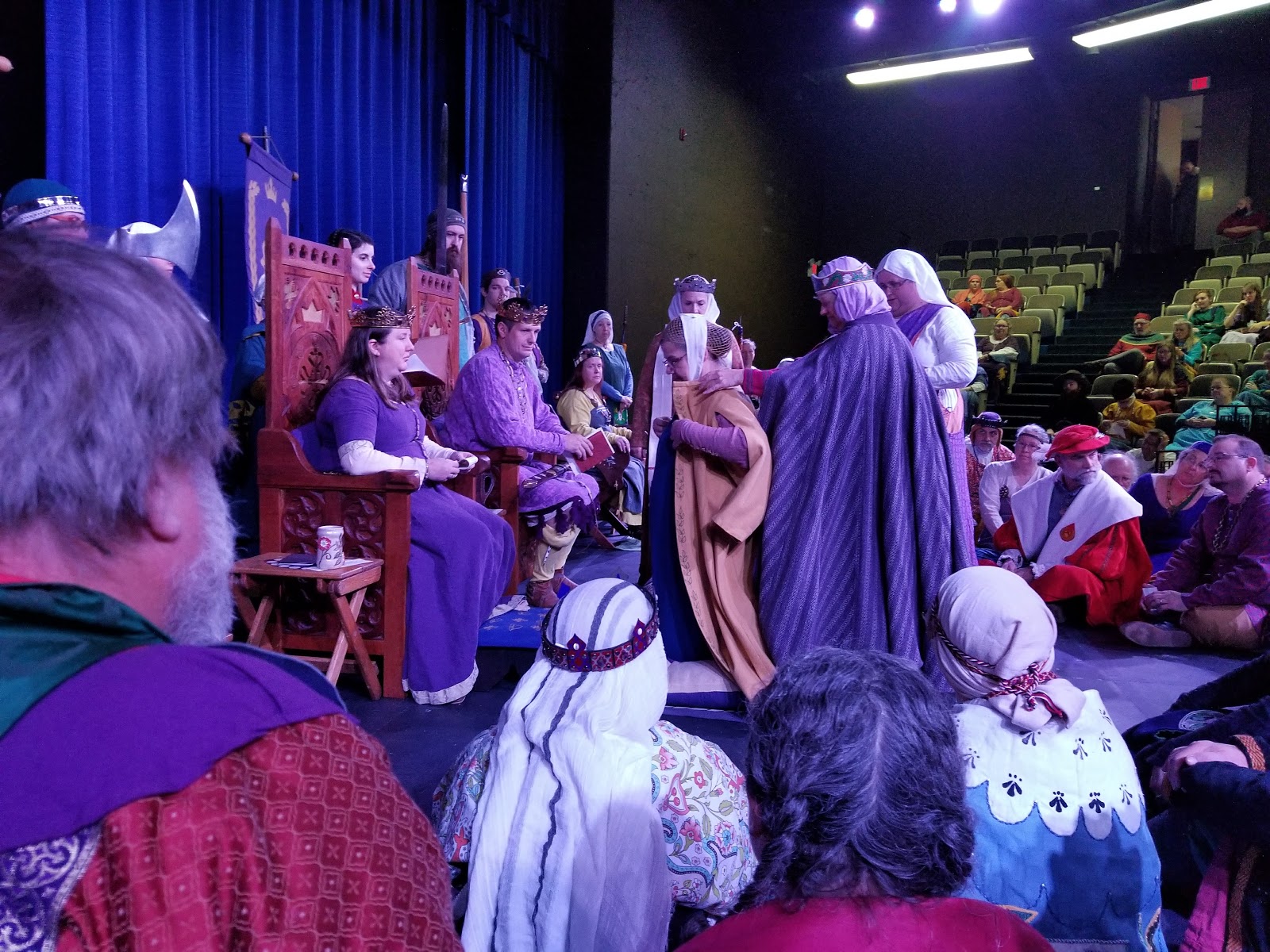 Then Lady Ayisha bint Asad was called into court for her extensive work as Their Majesties’ Royal Scribe. For her over-and-above efforts, they made her a Court Baroness.